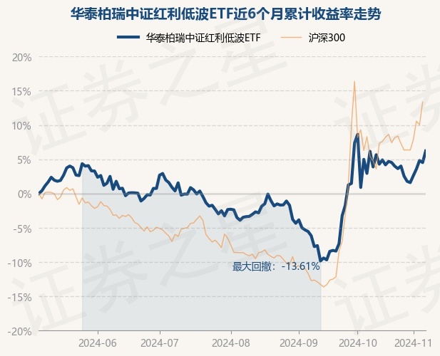 证券之星消息,11月7日,华泰柏瑞中证红利低波ETF最新单位净值为1.113元,累计净值为2.226元,较前一交易日上涨1.63%。历史数据显示该基金近1个月下跌1.07%,近3个月上涨10.03%,近6个月上涨6.21%,近1年上涨21.16%。该基金近6个月的累计收益率走势如下图: