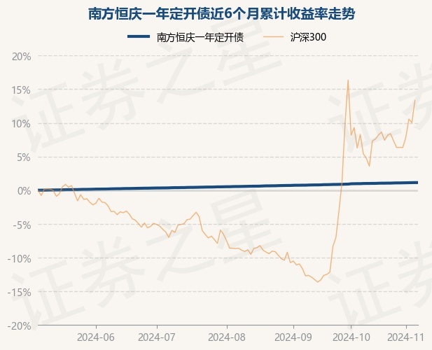 证券之星消息,11月7日,南方恒庆一年定开债最新单位净值为1.0218元,累计净值为1.1045元,较前一交易日上涨0.0%。历史数据显示该基金近1个月上涨0.23%,近3个月上涨0.58%,近6个月上涨1.14%,近1年上涨2.33%。该基金近6个月的累计收益率走势如下图:
