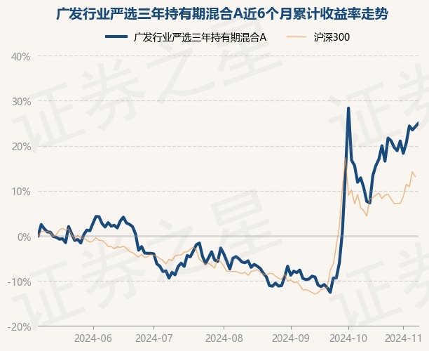 证券之星消息,11月8日,广发行业严选三年持有期混合A最新单位净值为0.5864元,累计净值为0.5864元,较前一交易日上涨0.62%。历史数据显示该基金近1个月下跌2.62%,近3个月上涨31.72%,近6个月上涨25.01%,近1年上涨10.54%。该基金近6个月的累计收益率走势如下图: