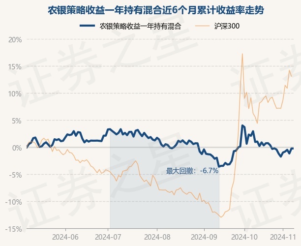 证券之星消息,11月8日,农银策略收益一年持有混合最新单位净值为0.6329元,累计净值为0.6329元,较前一交易日上涨0.0%。历史数据显示该基金近1个月下跌3.92%,近3个月下跌0.77%,近6个月下跌0.35%,近1年上涨8.35%。该基金近6个月的累计收益率走势如下图: