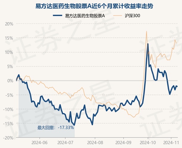 证券之星消息,11月8日,易方达医药生物股票A最新单位净值为0.6445元,累计净值为0.6445元,较前一交易日下跌0.2%。历史数据显示该基金近1个月下跌13.27%,近3个月上涨7.43%,近6个月下跌2.14%,近1年下跌5.64%。该基金近6个月的累计收益率走势如下图: