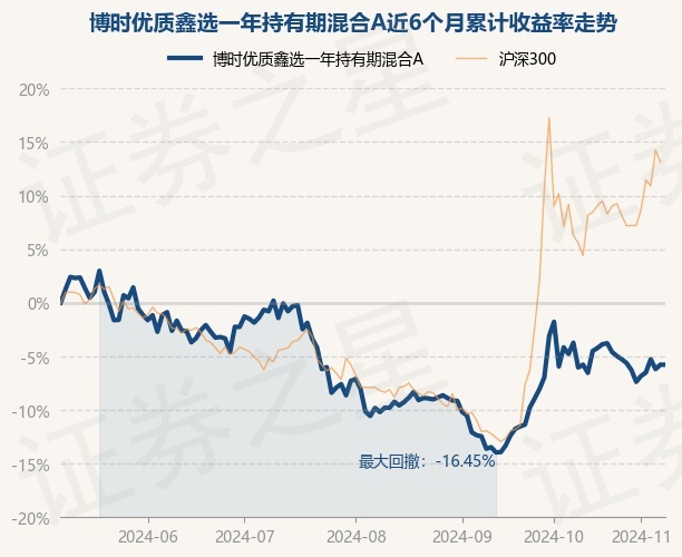 证券之星消息,11月8日,博时优质鑫选一年持有期混合A最新单位净值为0.7909元,累计净值为0.7909元,较前一交易日上涨0.0%。历史数据显示该基金近1个月下跌4.7%,近3个月上涨4.23%,近6个月下跌6.39%,近1年上涨9.41%。该基金近6个月的累计收益率走势如下图: