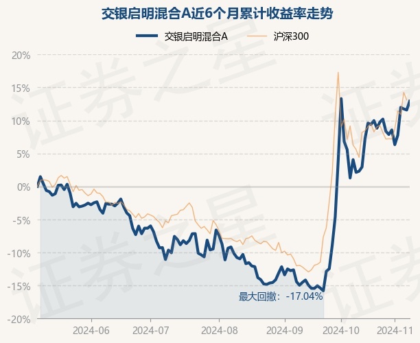证券之星消息,11月8日,交银启明混合A最新单位净值为1.1959元,累计净值为1.3619元,较前一交易日上涨1.2%。历史数据显示该基金近1个月下跌0.34%,近3个月上涨25.67%,近6个月上涨12.92%,近1年上涨6.75%。该基金近6个月的累计收益率走势如下图:
