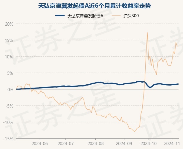 证券之星消息,11月8日,天弘京津冀发起债A最新单位净值为1.0655元,累计净值为1.1318元,较前一交易日上涨0.02%。历史数据显示该基金近1个月上涨0.79%,近3个月下跌0.44%,近6个月上涨1.56%,近1年上涨3.97%。该基金近6个月的累计收益率走势如下图:
