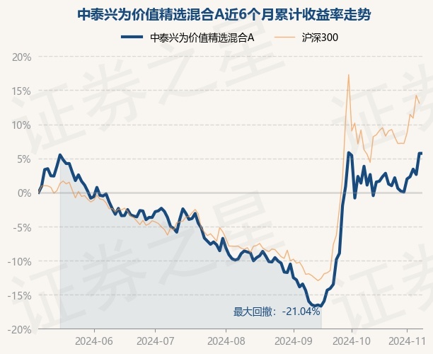 证券之星消息,11月8日,中泰兴为价值精选混合A最新单位净值为1.1023元,累计净值为1.1023元,较前一交易日上涨0.0%。历史数据显示该基金近1个月下跌1.12%,近3个月上涨14.52%,近6个月上涨4.25%,近1年上涨14.52%。该基金近6个月的累计收益率走势如下图: