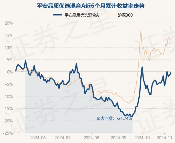 证券之星消息,11月8日,平安品质优选混合A最新单位净值为0.6697元,累计净值为0.6697元,较前一交易日上涨0.95%。历史数据显示该基金近1个月下跌2.43%,近3个月上涨12.27%,近6个月下跌0.59%,近1年下跌5.17%。该基金近6个月的累计收益率走势如下图: