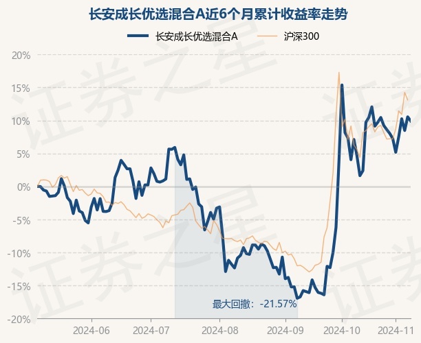 证券之星消息,11月8日,长安成长优选混合A最新单位净值为0.5672元,累计净值为0.5672元,较前一交易日下跌0.56%。历史数据显示该基金近1个月下跌4.72%,近3个月上涨25.4%,近6个月上涨9.92%,近1年上涨11.06%。该基金近6个月的累计收益率走势如下图: