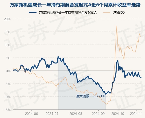 证券之星消息,11月8日,万家新机遇成长一年持有期混合发起式A最新单位净值为0.8782元,累计净值为0.8782元,较前一交易日上涨0.0%。历史数据显示该基金近1个月下跌5.7%,近3个月上涨2.28%,近6个月下跌2.05%,近1年上涨6.22%。该基金近6个月的累计收益率走势如下图: