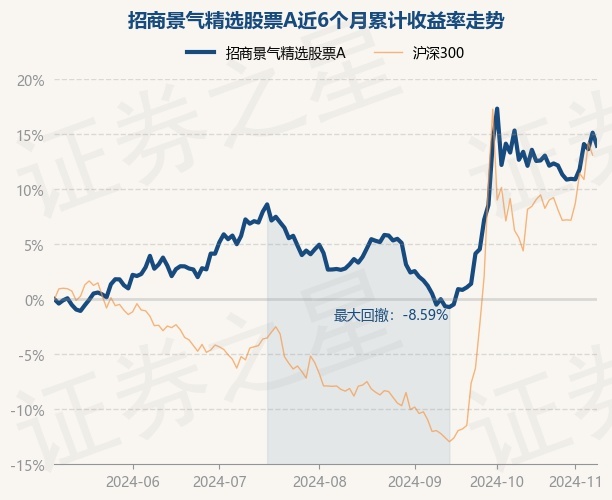 证券之星消息,11月8日,招商景气精选股票A最新单位净值为1.0014元,累计净值为1.0014元,较前一交易日下跌1.03%。历史数据显示该基金近1个月下跌2.87%,近3个月上涨11.0%,近6个月上涨13.96%,近1年上涨31.64%。该基金近6个月的累计收益率走势如下图: