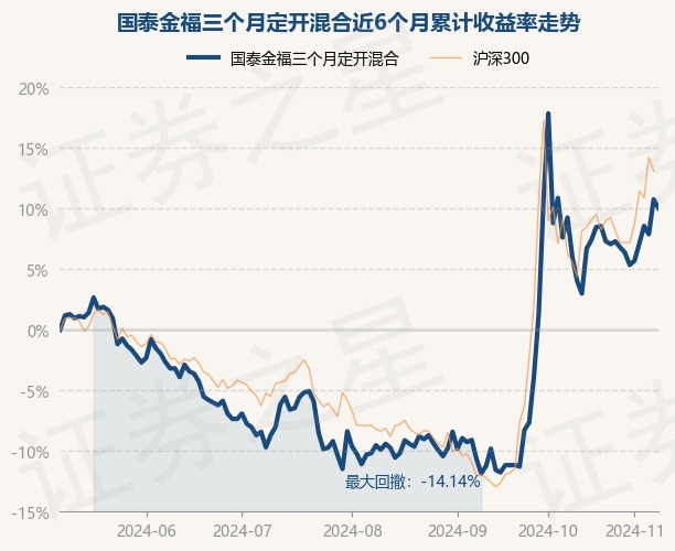 证券之星消息,11月8日,国泰金福三个月定开混合最新单位净值为0.7439元,累计净值为0.7439元,较前一交易日下跌0.64%。历史数据显示该基金近1个月下跌6.63%,近3个月上涨21.63%,近6个月上涨10.04%,近1年上涨10.98%。该基金近6个月的累计收益率走势如下图:
