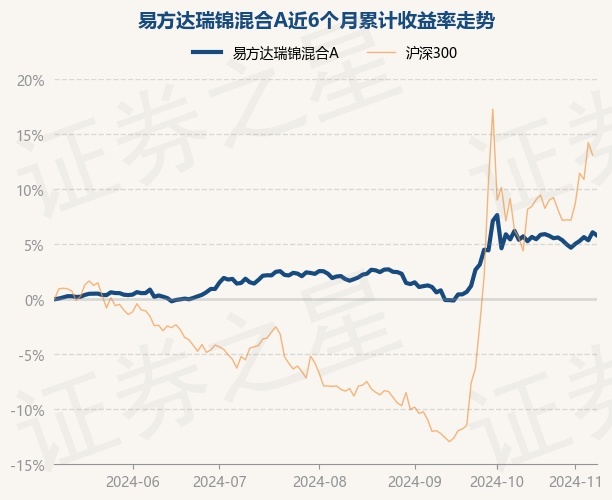 证券之星消息,11月8日,易方达瑞锦混合A最新单位净值为1.2503元,累计净值为1.2903元,较前一交易日下跌0.27%。历史数据显示该基金近1个月下跌1.72%,近3个月上涨3.62%,近6个月上涨5.81%,近1年上涨11.1%。该基金近6个月的累计收益率走势如下图: