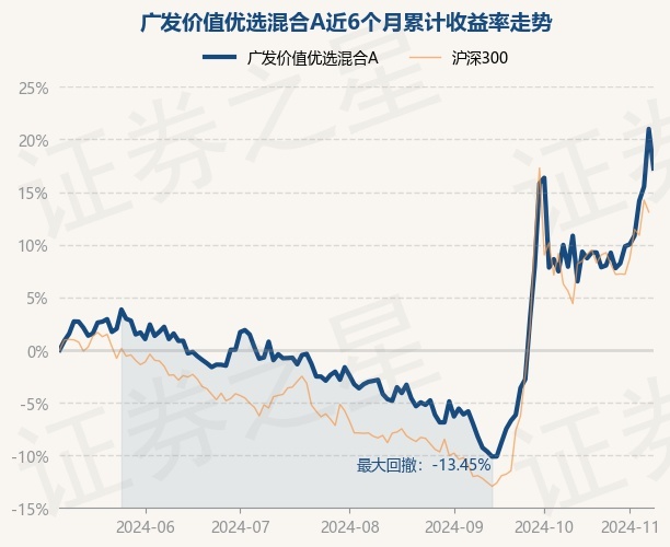 证券之星消息,11月8日,广发价值优选混合A最新单位净值为1.0864元,累计净值为1.0864元,较前一交易日下跌3.1%。历史数据显示该基金近1个月上涨0.77%,近3个月上涨20.79%,近6个月上涨17.25%,近1年上涨29.81%。该基金近6个月的累计收益率走势如下图: