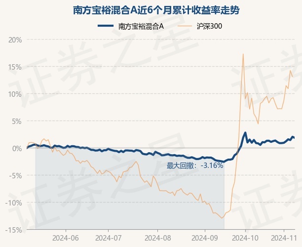 证券之星消息,11月8日,南方宝裕混合A最新单位净值为1.095元,累计净值为1.095元,较前一交易日下跌0.18%。历史数据显示该基金近1个月下跌0.93%,近3个月上涨3.06%,近6个月上涨1.85%,近1年上涨6.23%。该基金近6个月的累计收益率走势如下图: