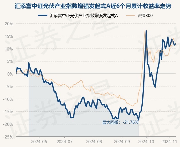 证券之星消息,11月8日,汇添富中证光伏产业指数增强发起式A最新单位净值为0.5395元,累计净值为0.5395元,较前一交易日上涨0.39%。历史数据显示该基金近1个月下跌4.45%,近3个月上涨25.44%,近6个月上涨11.81%,近1年下跌1.37%。该基金近6个月的累计收益率走势如下图: