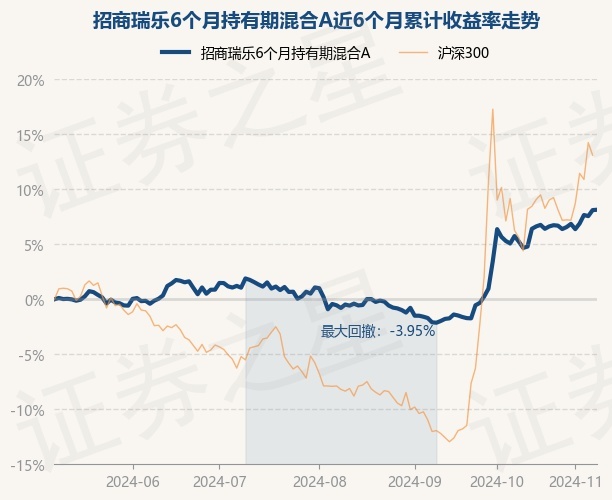 证券之星消息,11月8日,招商瑞乐6个月持有期混合A最新单位净值为1.0856元,累计净值为1.0856元,较前一交易日上涨0.03%。历史数据显示该基金近1个月上涨1.66%,近3个月上涨9.0%,近6个月上涨8.14%,近1年上涨7.09%。该基金近6个月的累计收益率走势如下图: