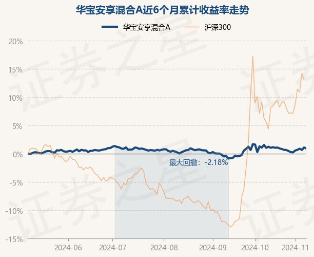 证券之星消息,11月8日,华宝安享混合A最新单位净值为1.1215元,累计净值为1.1215元,较前一交易日下跌0.19%。历史数据显示该基金近1个月下跌0.69%,近3个月上涨0.52%,近6个月上涨0.94%,近1年上涨7.21%。该基金近6个月的累计收益率走势如下图: