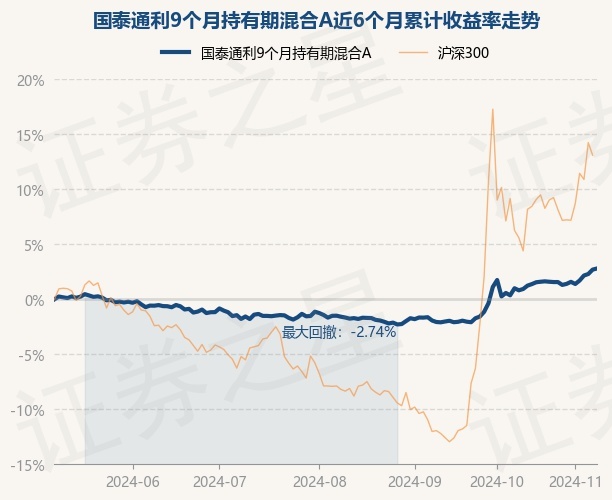 证券之星消息,11月8日,国泰通利9个月持有期混合A最新单位净值为1.1095元,累计净值为1.1095元,较前一交易日上涨0.1%。历史数据显示该基金近1个月上涨1.03%,近3个月上涨4.45%,近6个月上涨2.8%,近1年上涨1.51%。该基金近6个月的累计收益率走势如下图: