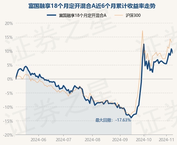 证券之星消息,11月8日,富国融享18个月定开混合A最新单位净值为1.1491元,累计净值为1.4191元,较前一交易日下跌1.29%。历史数据显示该基金近1个月下跌2.77%,近3个月上涨19.55%,近6个月上涨9.29%,近1年上涨11.74%。该基金近6个月的累计收益率走势如下图:
