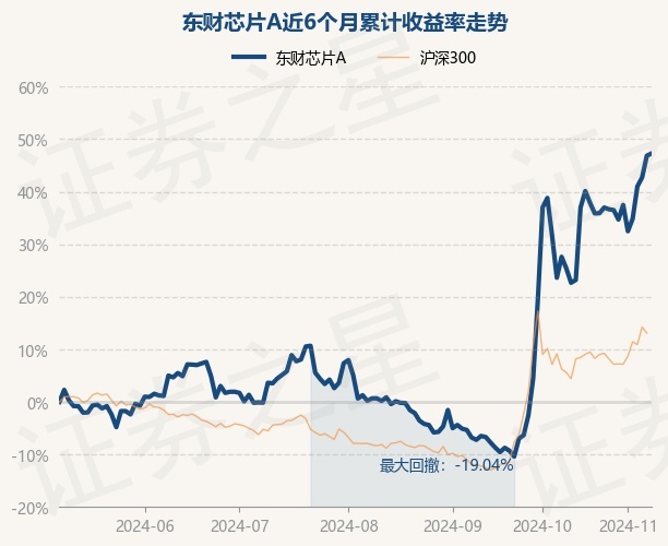 证券之星消息,11月8日,东财芯片A最新单位净值为0.8953元,累计净值为0.8953元,较前一交易日上涨0.29%。历史数据显示该基金近1个月上涨7.48%,近3个月上涨46.29%,近6个月上涨47.28%,近1年上涨18.93%。该基金近6个月的累计收益率走势如下图: