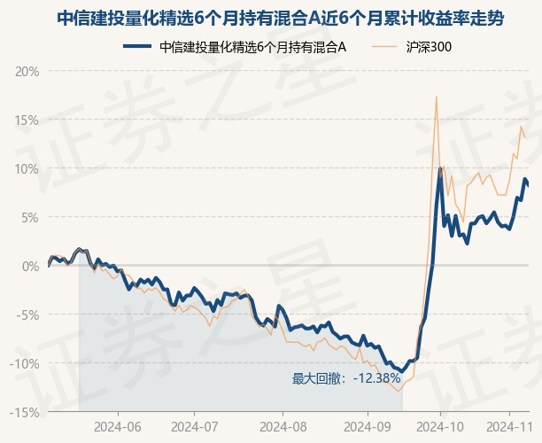 中信建投量化精选6个月持有混合A为混合型-偏股基金,根据最新一期基金季报显示,该基金资产配置:股票占净值比71.58%,无债券类资产,现金占净值比28.7%。基金十大重仓股如下: