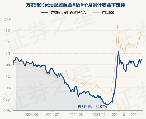 证券之星消息,11月8日,万家瑞兴灵活配置混合A最新单位净值为1.0712元,累计净值为1.7112元,较前一交易日下跌0.3%。历史数据显示该基金近1个月下跌3.65%,近3个月上涨16.8%,近6个月上涨2.05%,近1年上涨3.52%。该基金近6个月的累计收益率走势如下图: