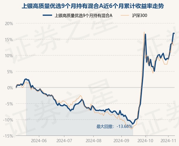 证券之星消息,11月8日,上银高质量优选9个月持有混合A最新单位净值为0.696元,累计净值为0.696元,较前一交易日上涨0.0%。历史数据显示该基金近1个月下跌0.91%,近3个月上涨24.24%,近6个月上涨15.48%,近1年上涨14.97%。该基金近6个月的累计收益率走势如下图: