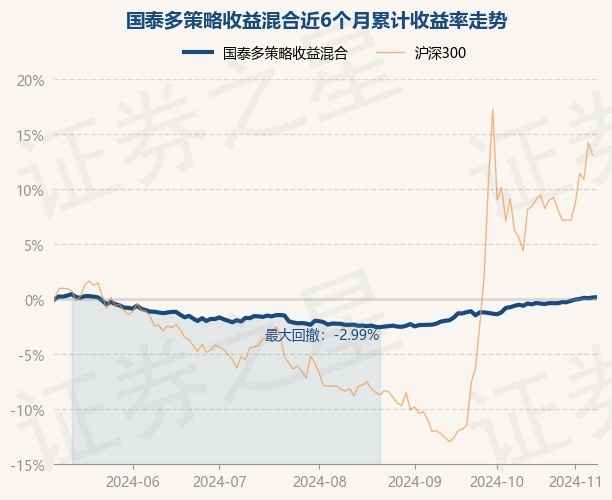 证券之星消息,11月8日,国泰多策略收益混合最新单位净值为1.3726元,累计净值为1.3726元,较前一交易日上涨0.03%。历史数据显示该基金近1个月上涨1.57%,近3个月上涨2.48%,近6个月上涨0.19%,近1年下跌1.17%。该基金近6个月的累计收益率走势如下图: