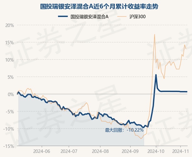 证券之星消息,11月8日,国投瑞银安泽混合A最新单位净值为1.0542元,累计净值为1.0542元,较前一交易日上涨0.0%。历史数据显示该基金近1个月下跌4.65%,近3个月上涨7.06%,近6个月上涨0.66%,近1年上涨0.75%。该基金近6个月的累计收益率走势如下图: