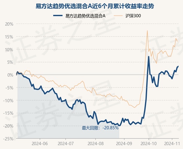 证券之星消息,11月8日,易方达趋势优选混合A最新单位净值为0.7597元,累计净值为0.7597元,较前一交易日上涨0.36%。历史数据显示该基金近1个月下跌3.55%,近3个月上涨26.3%,近6个月上涨3.26%,近1年上涨4.05%。该基金近6个月的累计收益率走势如下图: