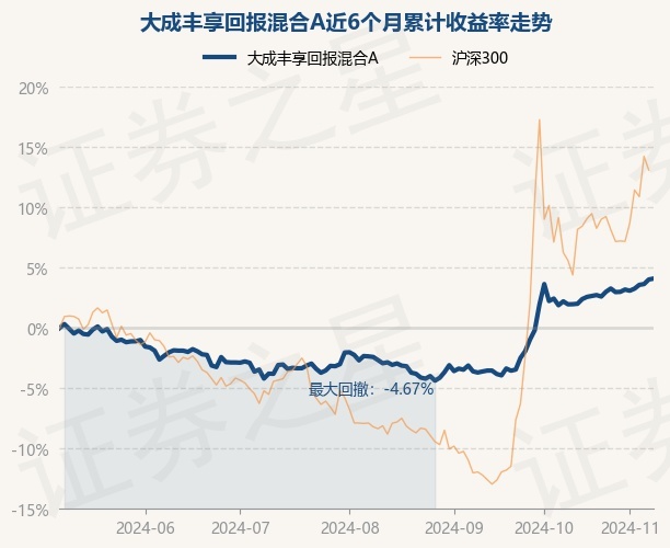 证券之星消息,11月8日,大成丰享回报混合A最新单位净值为1.0968元,累计净值为1.0968元,较前一交易日上涨0.07%。历史数据显示该基金近1个月上涨0.44%,近3个月上涨6.66%,近6个月上涨4.1%,近1年上涨6.81%。该基金近6个月的累计收益率走势如下图: