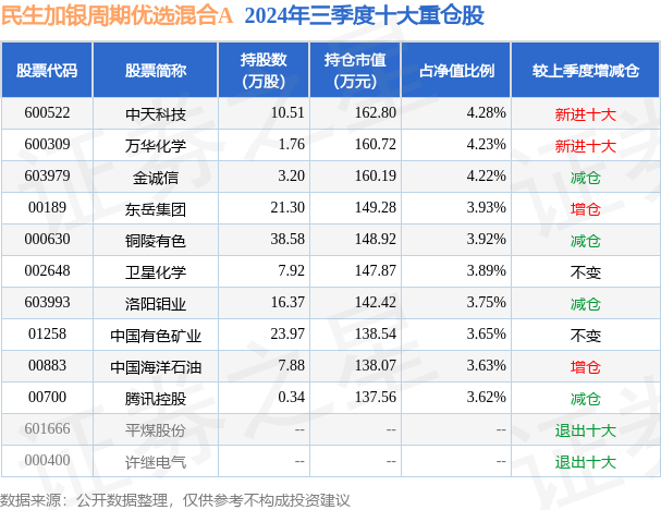 民生加银周期优选混合A为混合型-偏股基金,根据最新一期基金季报显示,该基金资产配置:股票占净值比85.3%,无债券类资产,现金占净值比9.66%。基金十大重仓股如下: