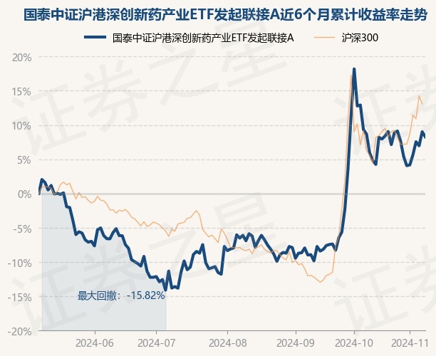 证券之星消息,11月8日,国泰中证沪港深创新药产业ETF发起联接A最新单位净值为0.5995元,累计净值为0.5995元,较前一交易日下跌0.68%。历史数据显示该基金近1个月下跌8.39%,近3个月上涨15.31%,近6个月上涨8.27%,近1年下跌19.42%。该基金近6个月的累计收益率走势如下图: