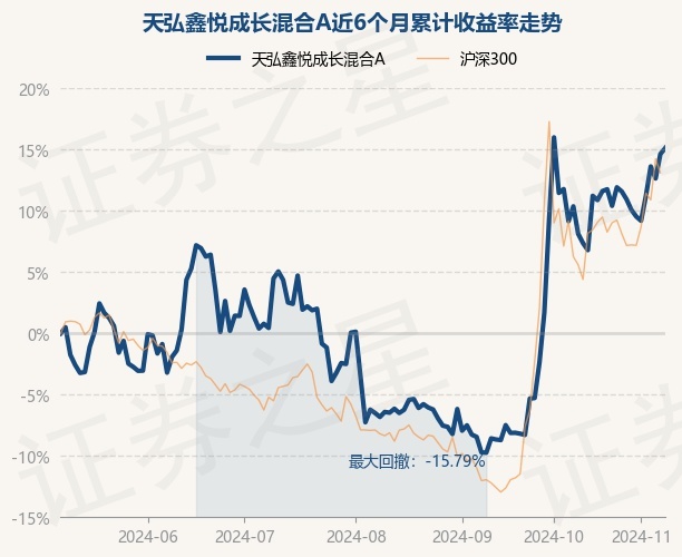 证券之星消息,11月8日,天弘鑫悦成长混合A最新单位净值为0.927元,累计净值为0.927元,较前一交易日上涨0.42%。历史数据显示该基金近1个月下跌0.75%,近3个月上涨23.55%,近6个月上涨15.13%,近1年上涨11.42%。该基金近6个月的累计收益率走势如下图: