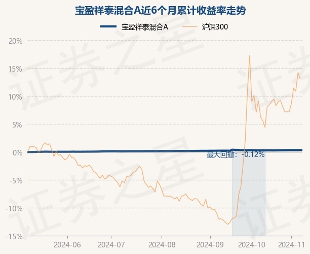 证券之星消息,11月8日,宝盈祥泰混合A最新单位净值为1.0589元,累计净值为1.3242元,较前一交易日上涨0.01%。历史数据显示该基金近1个月上涨0.03%,近3个月上涨0.19%,近6个月上涨0.37%,近1年上涨2.01%。该基金近6个月的累计收益率走势如下图: