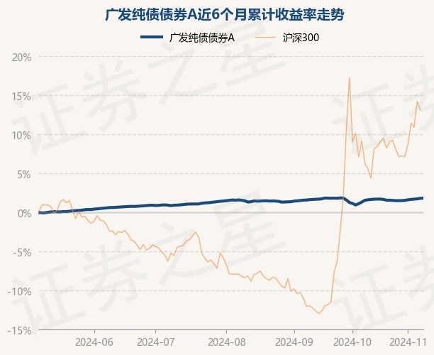 证券之星消息,11月8日,广发纯债债券A最新单位净值为1.2472元,累计净值为1.6849元,较前一交易日上涨0.04%。历史数据显示该基金近1个月上涨0.69%,近3个月上涨0.28%,近6个月上涨1.85%,近1年上涨5.19%。该基金近6个月的累计收益率走势如下图: