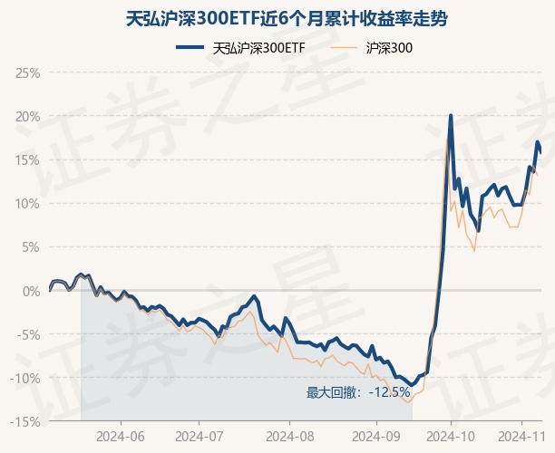 证券之星消息,11月8日,天弘沪深300ETF最新单位净值为1.149元,累计净值为1.149元,较前一交易日下跌0.99%。历史数据显示该基金近1个月下跌3.49%,近3个月上涨23.22%,近6个月上涨15.8%,近1年上涨16.46%。该基金近6个月的累计收益率走势如下图: