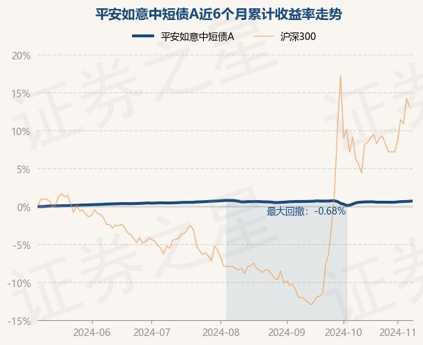 证券之星消息,11月8日,平安如意中短债A最新单位净值为1.0987元,累计净值为1.216元,较前一交易日上涨0.03%。历史数据显示该基金近1个月上涨0.41%,近3个月下跌0.04%,近6个月上涨0.72%,近1年上涨2.71%。该基金近6个月的累计收益率走势如下图: