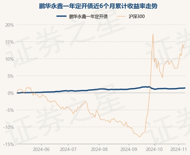 证券之星消息,11月8日,鹏华永鑫一年定开债最新单位净值为1.0225元,累计净值为1.0635元,较前一交易日上涨0.0%。历史数据显示该基金近1个月上涨0.34%,近3个月上涨0.35%,近6个月上涨1.41%,近1年上涨3.7%。该基金近6个月的累计收益率走势如下图:
