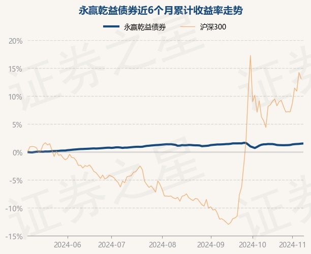 证券之星消息,11月8日,永赢乾益债券最新单位净值为1.0817元,累计净值为1.1157元,较前一交易日上涨0.03%。历史数据显示该基金近1个月上涨0.66%,近3个月上涨0.19%,近6个月上涨1.53%,近1年上涨4.48%。该基金近6个月的累计收益率走势如下图: