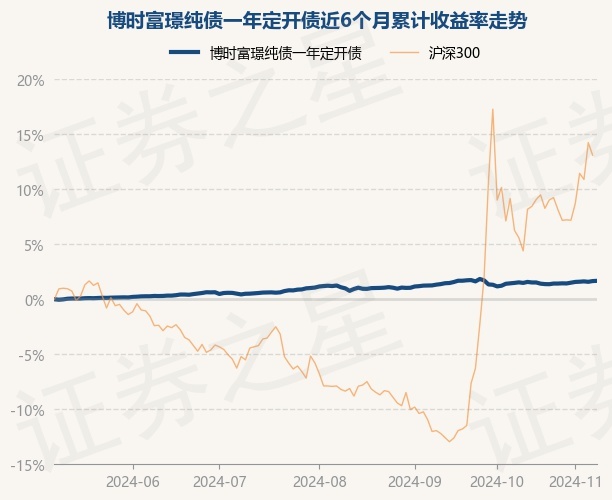 证券之星消息,11月8日,博时富璟纯债一年定开债最新单位净值为1.0296元,累计净值为1.0949元,较前一交易日上涨0.02%。历史数据显示该基金近1个月上涨0.5%,近3个月上涨0.58%,近6个月上涨1.68%,近1年上涨4.3%。该基金近6个月的累计收益率走势如下图: