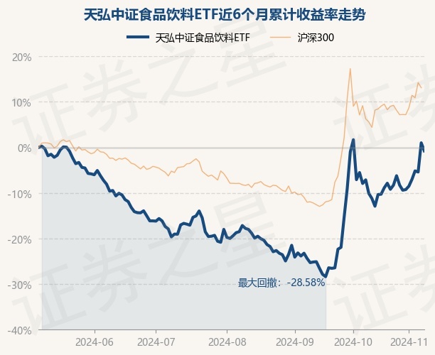 证券之星消息,11月8日,天弘中证食品饮料ETF最新单位净值为0.7773元,累计净值为0.7773元,较前一交易日下跌1.76%。历史数据显示该基金近1个月下跌2.41%,近3个月上涨19.77%,近6个月下跌0.77%,近1年下跌6.02%。该基金近6个月的累计收益率走势如下图: