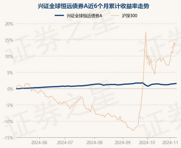 证券之星消息,11月8日,兴证全球恒远债券A最新单位净值为1.0335元,累计净值为1.0535元,较前一交易日上涨0.04%。历史数据显示该基金近1个月上涨0.72%,近3个月上涨0.27%,近6个月上涨1.58%,近1年上涨4.35%。该基金近6个月的累计收益率走势如下图: