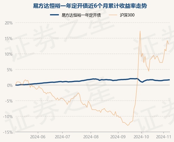 易方达恒裕一年定开债为债券型-长债基金,根据最新一期基金季报显示,该基金资产配置:无股票类资产,债券占净值比119.33%,现金占净值比1.22%。