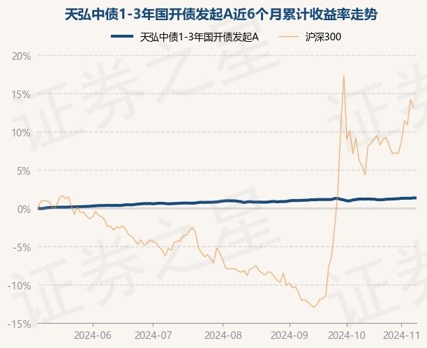 证券之星消息,11月8日,天弘中债1-3年国开债发起A最新单位净值为1.0135元,累计净值为1.1216元,较前一交易日上涨0.0%。历史数据显示该基金近1个月上涨0.38%,近3个月上涨0.43%,近6个月上涨1.35%,近1年上涨3.79%。该基金近6个月的累计收益率走势如下图: