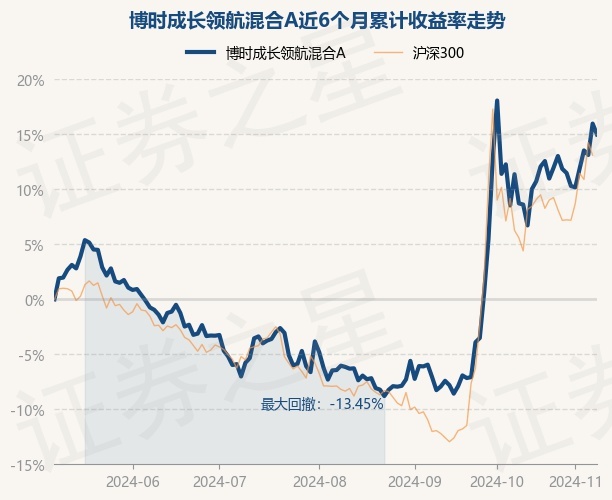 证券之星消息,11月8日,博时成长领航混合A最新单位净值为0.7292元,累计净值为0.7292元,较前一交易日下跌0.86%。历史数据显示该基金近1个月下跌2.62%,近3个月上涨22.37%,近6个月上涨14.98%,近1年上涨8.16%。该基金近6个月的累计收益率走势如下图: