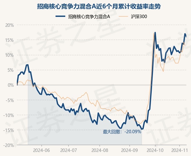 证券之星消息,11月8日,招商核心竞争力混合A最新单位净值为1.0786元,累计净值为1.3603元,较前一交易日下跌0.79%。历史数据显示该基金近1个月下跌1.15%,近3个月上涨30.06%,近6个月上涨16.07%,近1年上涨2.23%。该基金近6个月的累计收益率走势如下图: