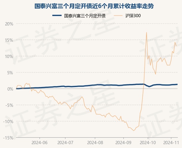 证券之星消息,11月8日,国泰兴富三个月定开债最新单位净值为1.023元,累计净值为1.1856元,较前一交易日上涨0.02%。历史数据显示该基金近1个月上涨0.5%,近3个月上涨0.12%,近6个月上涨1.29%,近1年上涨4.07%。该基金近6个月的累计收益率走势如下图: