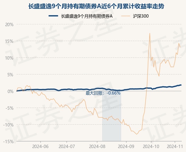 证券之星消息,11月8日,长盛盛逸9个月持有期债券A最新单位净值为1.0568元,累计净值为1.0677元,较前一交易日上涨0.01%。历史数据显示该基金近1个月上涨0.94%,近3个月上涨1.05%,近6个月上涨1.78%,近1年上涨4.96%。该基金近6个月的累计收益率走势如下图: