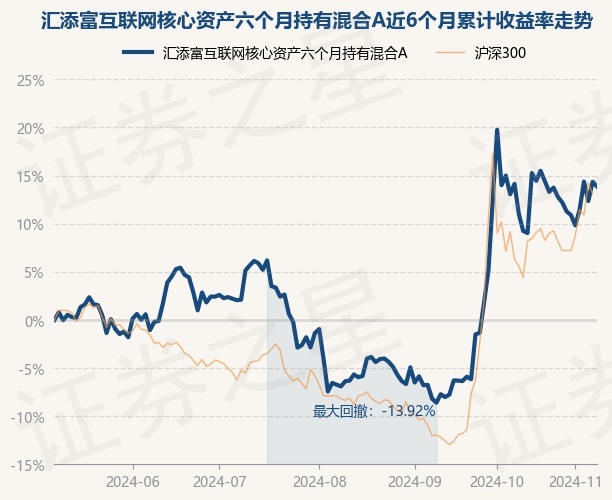 证券之星消息,11月8日,汇添富互联网核心资产六个月持有混合A最新单位净值为0.6446元,累计净值为0.6446元,较前一交易日下跌0.42%。历史数据显示该基金近1个月下跌4.91%,近3个月上涨22.31%,近6个月上涨13.87%,近1年上涨12.55%。该基金近6个月的累计收益率走势如下图: