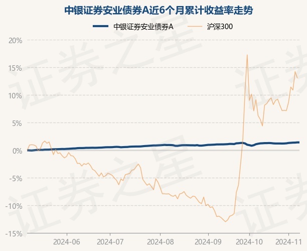 证券之星消息,11月8日,中银证券安业债券A最新单位净值为1.0785元,累计净值为1.0837元,较前一交易日上涨0.0%。历史数据显示该基金近1个月上涨0.51%,近3个月上涨0.49%,近6个月上涨1.44%,近1年上涨3.76%。该基金近6个月的累计收益率走势如下图: